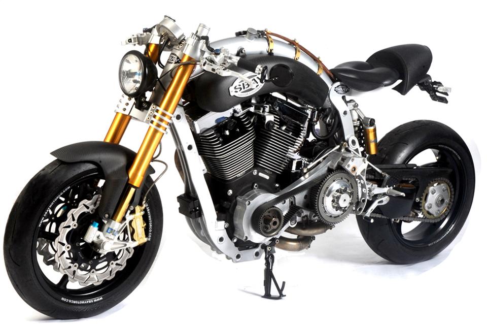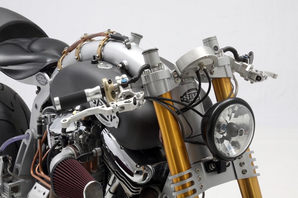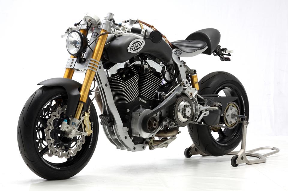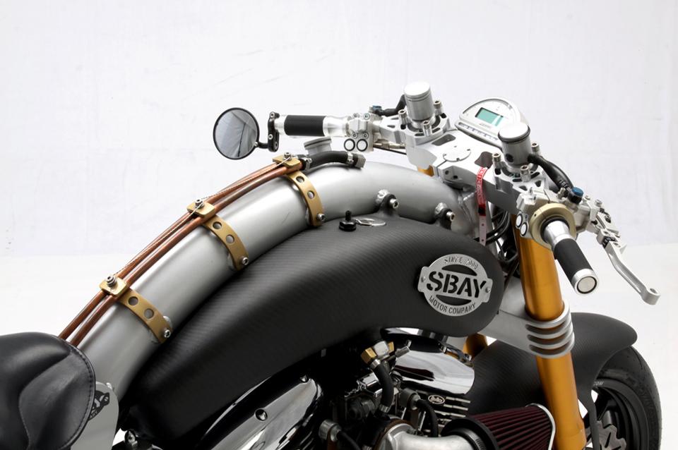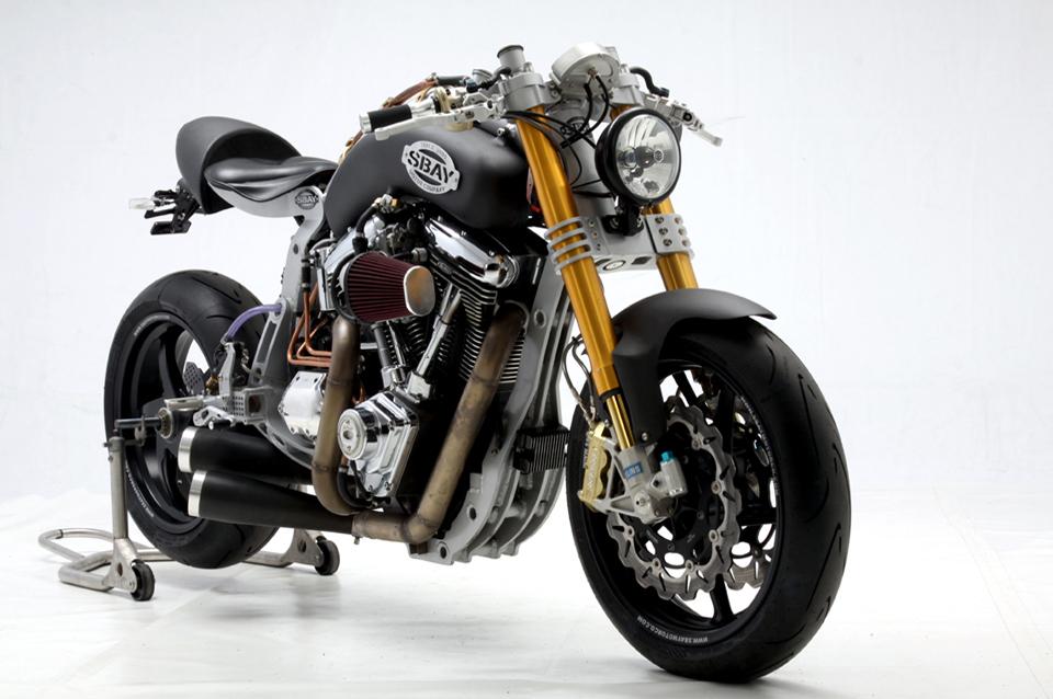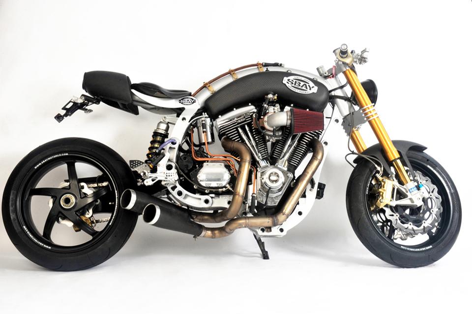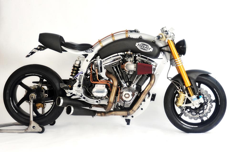 Basing its name off the 1840cc Rev-Tech v-twin motor, the Flying 1800 puts out 115hp, and weighs a paltry 465 lbs. Using a Rev-Tech five-speed transmission, Sbay has also tapped Öhlins for the suspension, Galfer and Brembo for the brakes, and Marchesini for the wheels, which puts all the right names on the build spec sheet. Along with the café styling which seems to be all the rage right now, the Flying 1800 is a stylish and sporty motorcycle that makes us want to give up our sport bike ways.